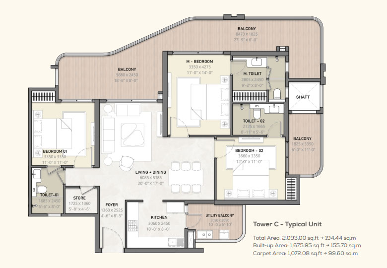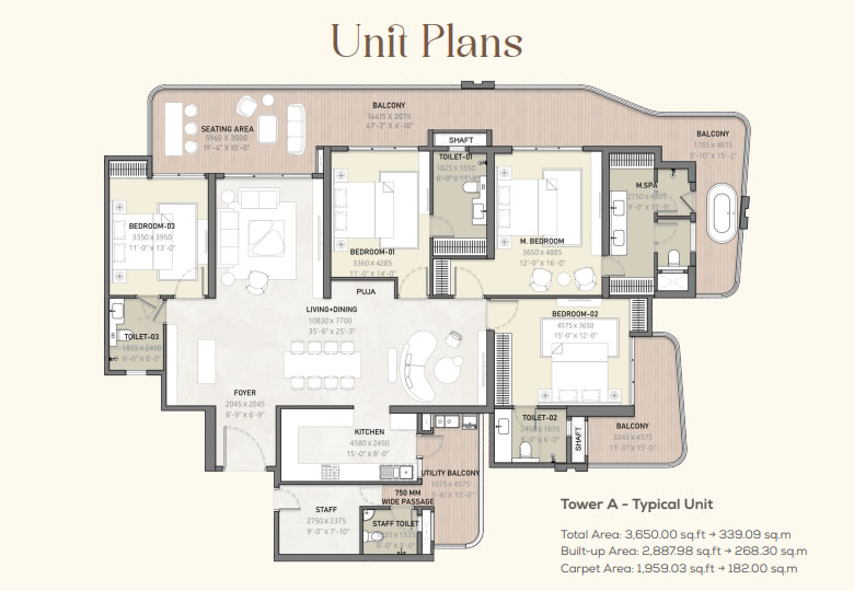 The project features thoughtfully planned residences with large balconies, abundant natural light, and premium fittings. Every apartment is designed to maximize space utilization while maintaining privacy and comfort. The elegant architecture, landscaped surroundings, and well-planned infrastructure create a serene and sophisticated environment for residents.